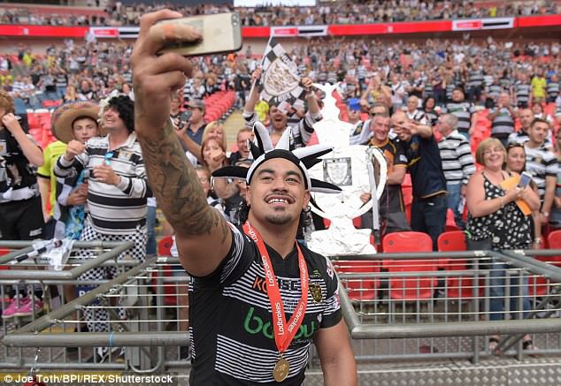 Mahe Fonua celebrating with the Hull FC faithful after their Challenge Cup victory! Credit: Daily Mail