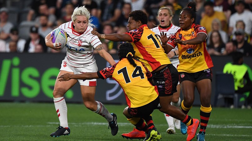 England facing off against PNG Orchids in the World Cup 9s.