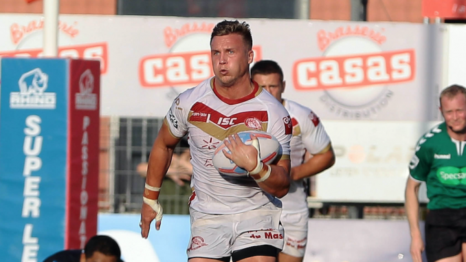 Josh Drinkwater (pictured) playing in France for Catalan Dragons during his first stint at the club in 2018.
